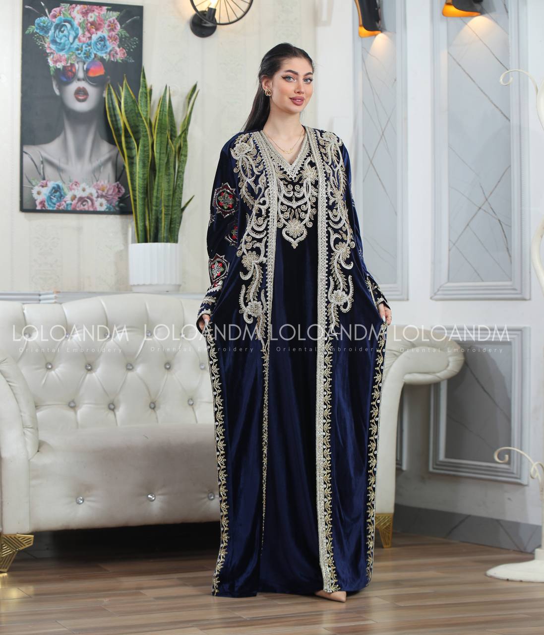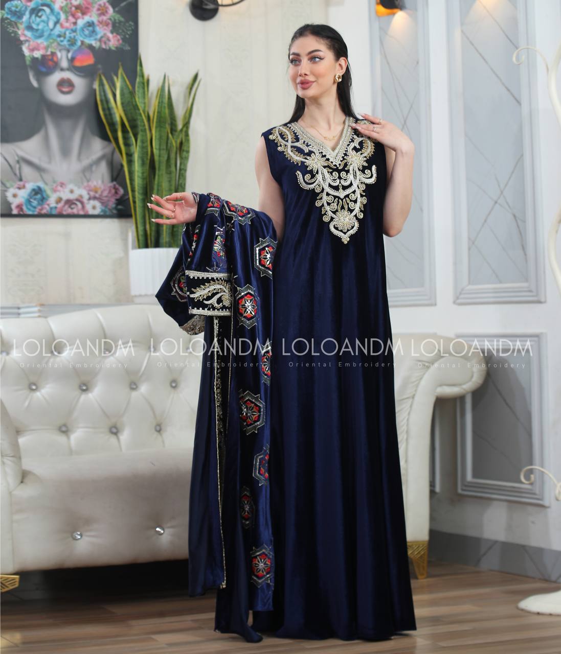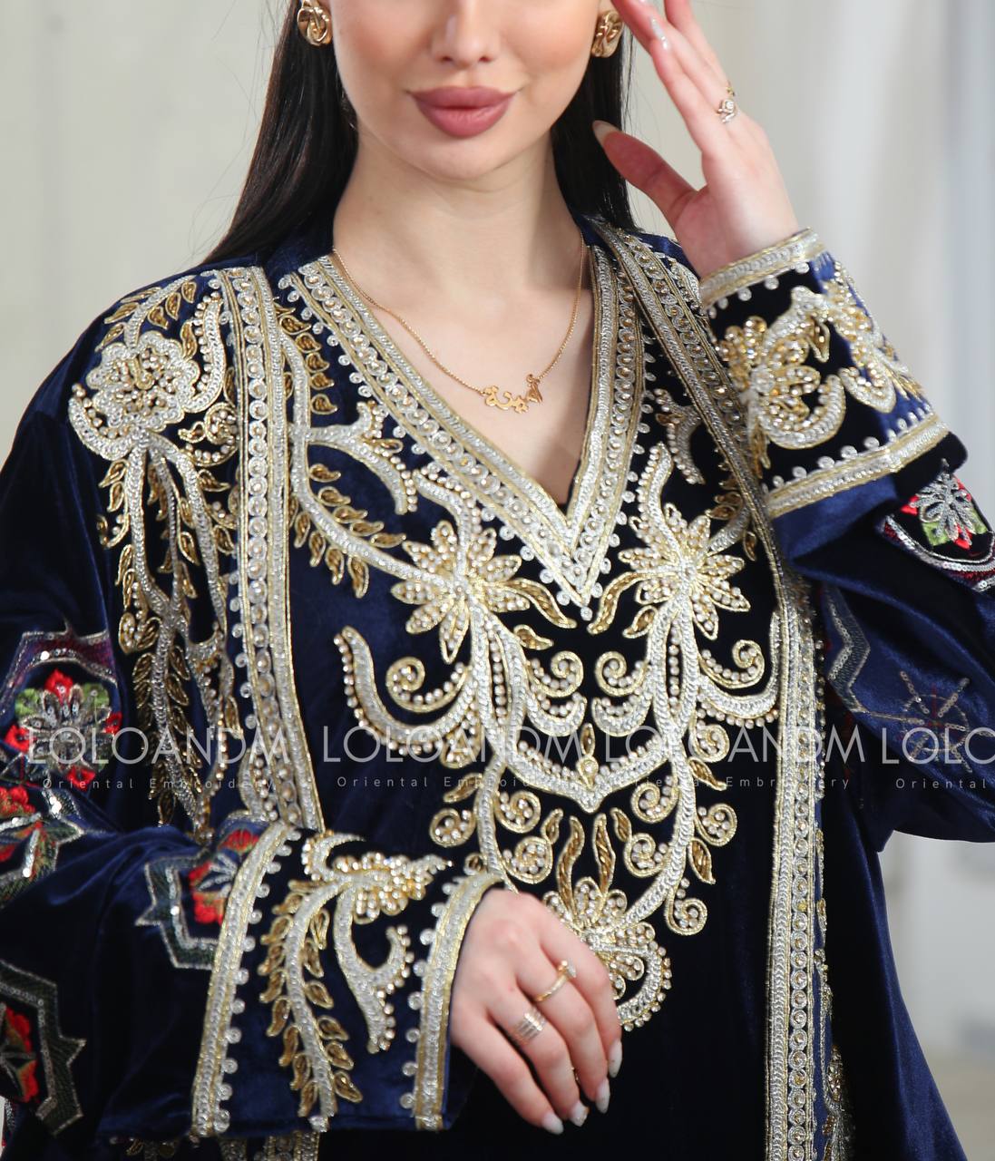 مزين بنقش بخيوط ذهبية وشك يدوي